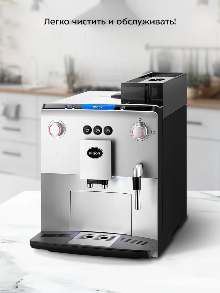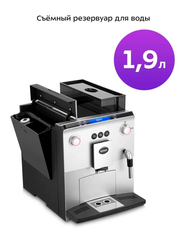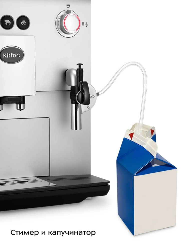 Автоматическая кофемашина Kitfort КТ-7318 — отличный выбор для гурманов, которые не желают тратить много времени и сил, чтобы насладиться полным букетом вкуса свежезаваренного кофе. Кофемашина готовит эспрессо, двойной эспрессо, молочную пенку, а также горячую воду. На основе эспрессо и молока вы можете приготовить множество кофейных напитков, например, американо, капучино, латте, макиато или флэт уайт.