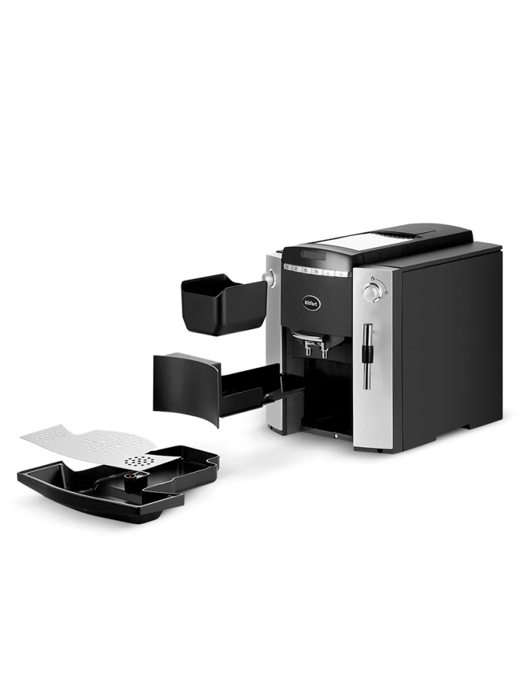 Кофемашина KT-7320 позволяет настроить объем воды и температуру кофе, время взбивания и подогревания молока, жесткость воды, более или менее крепкий кофе. Также вы можете настроить время автоматического включения и отключения кофемашины.