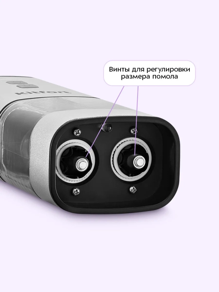 Автоматическая мельница для соли и перца Kitfort КТ-6487 — электрическая мельница, которая может измельчать перец-горошек, соль и другие сухие специи.