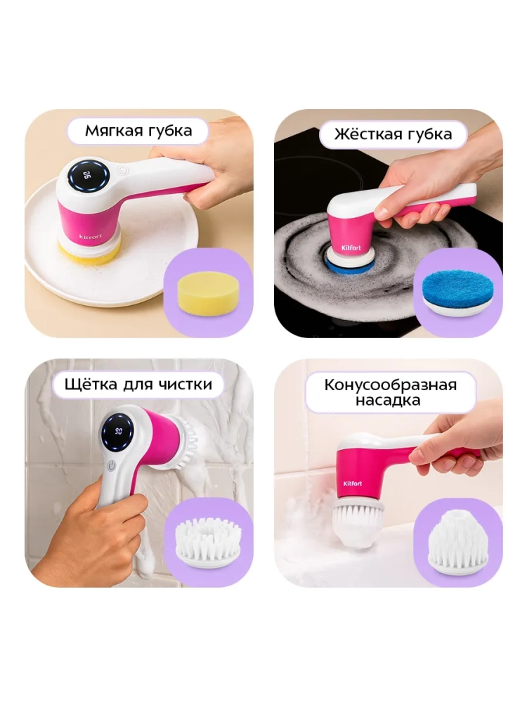 C помощью автоматической щетки Kitfort КТ-9818 для уборки вы можете проводить уборку дома и в автомобиле. Щетка позволит вам без усилий почистить сантехнику, плитку, плинтуса и многое другое.