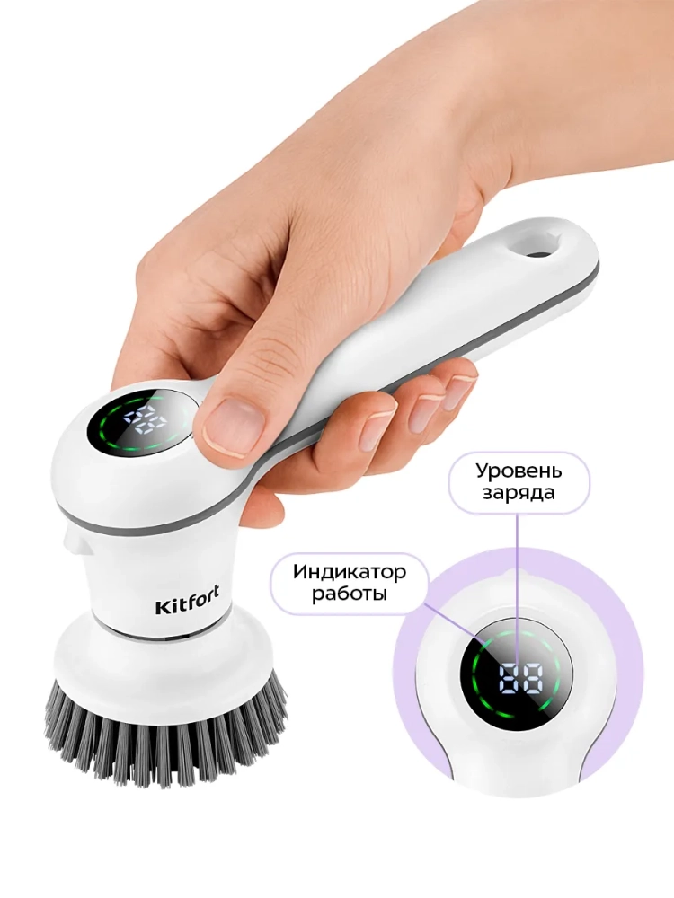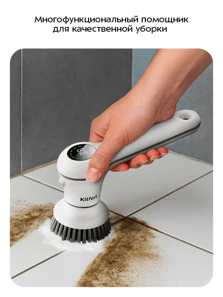 C помощью автоматической щетки Kitfort КТ-9819 для уборки вы можете проводить уборку дома и в автомобиле. Щетка позволит вам без усилий почистить сантехнику, плитку, плинтуса и многое другое. Благодаря подсветке в верхней части прибора вам будет намного удобнее убирать в темных или труднодоступных местах.
