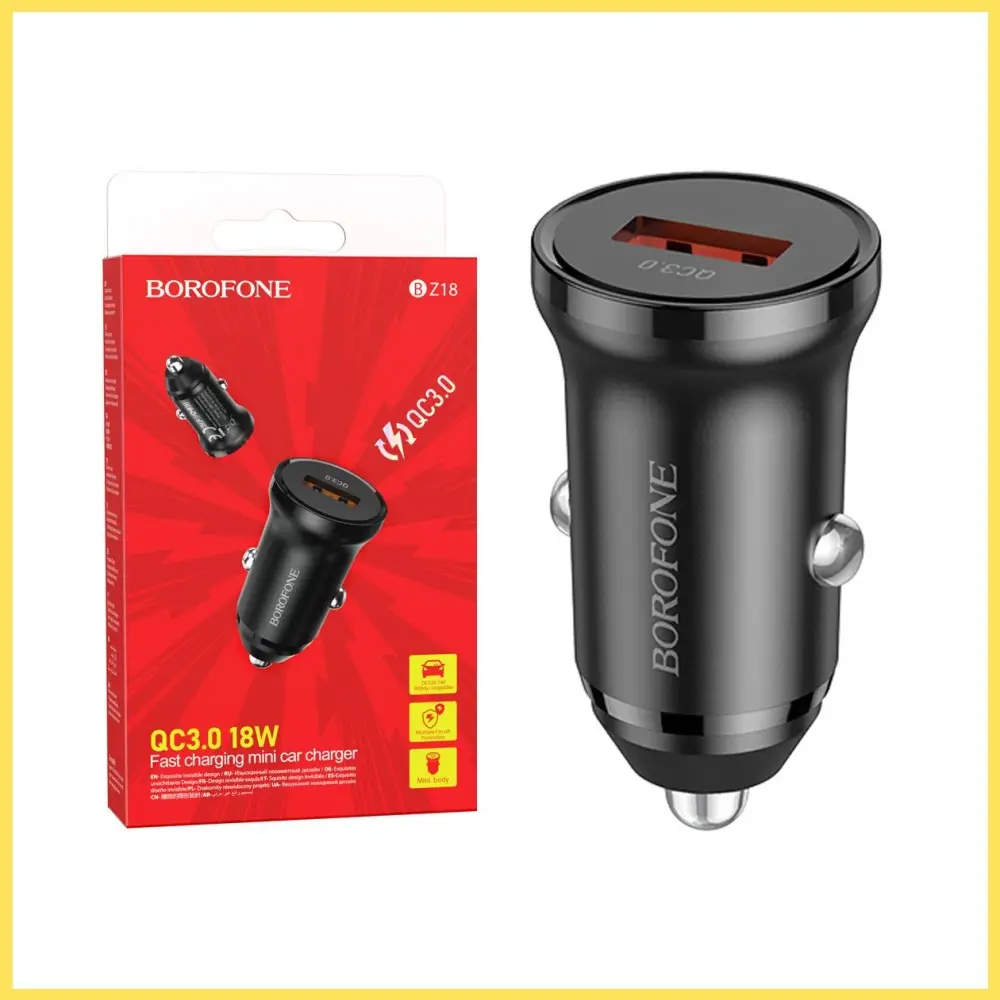 BZ18 - это компактное автомобильное зарядное устройство от известного бренда BOROFONE. Устройство имеет современный дизайн и один USB разъем для зарядки с технологией быстрого заряда Quick Charge 3.0. Корпус сделан из прочного ABS. Устройство является продолжением линейки зарядных устройств от BOROFONE, где каждая новая модель является усовершенствованной версией предыдущей.