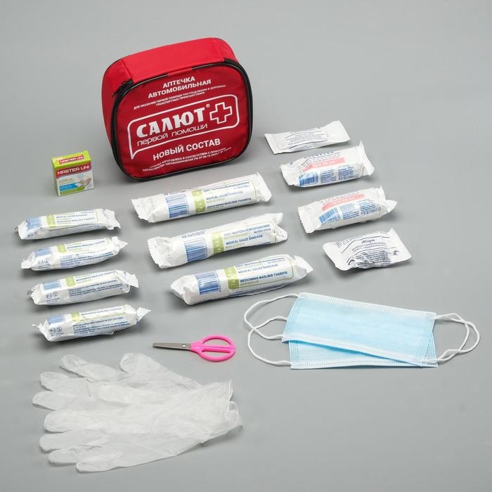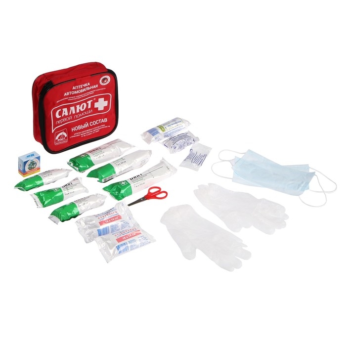 Автомобильная аптечка первой помощи "Салют" состав 2024, мягкий футляр