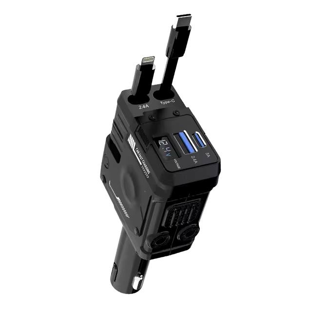 Испытайте быструю зарядку с выходной мощностью этого автомобильного зарядного устройства 120W, гарантируя, что ваши устройства заряжаются в кратчайшие сроки. Функциональность 4-в-1: Этот универсальный продукт представляет собой USB-кабель 4-в-1, служащий в качестве зарядного устройства, прикуривателя и многого другого, удовлетворяя различные потребности. Широкая совместимость: разработанное для универсальной совместимости, это зарядное устройство подходит для iPhone, Huawei, Samsung и других устройств. Компактный и портативный: его компактный дизайн позволяет легко носить с собой, идеально подходит для длинных дисков или использования в дороге. Безопасность и надежность: этот продукт, происходящий из материкового Китая, гарантирует безопасность и надежность в его эксплуатации. Функция прикуривателя: оснащенное функцией прикуривателя, это автомобильное зарядное устройство добавляет удобства для зажигания ваших сигарет.
