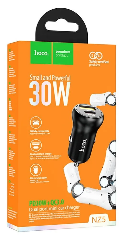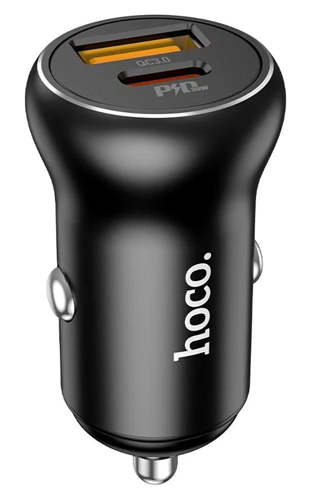 Hoco NZ5 Smooth road PD30W+QC3.0 - автомобильное зарядное устройство для телефона и других USB-гаджетов. Выгодно отличается металлическим корпусом и двумя портами с поддержкой быстрой зарядки