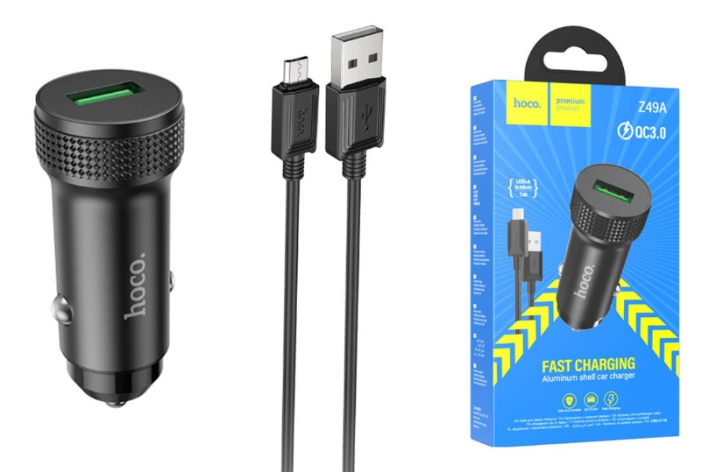 Автомобильное зарядное устройство АЗУ USB + кабель MicroUSB HOCO Z49A Level QC3.0 (черный)