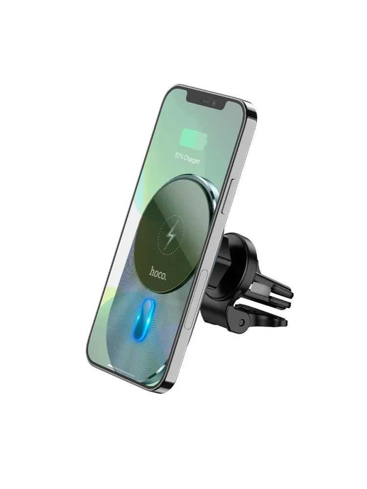 Автомобильный держатель для телефона Hoco CA91 Ultra-fast крепко держит быстро заряжает и не мешает вождению . Эта модель с беспроводной зарядкой специально разработана для смартфонов со встроенными магнитами Magsafe .