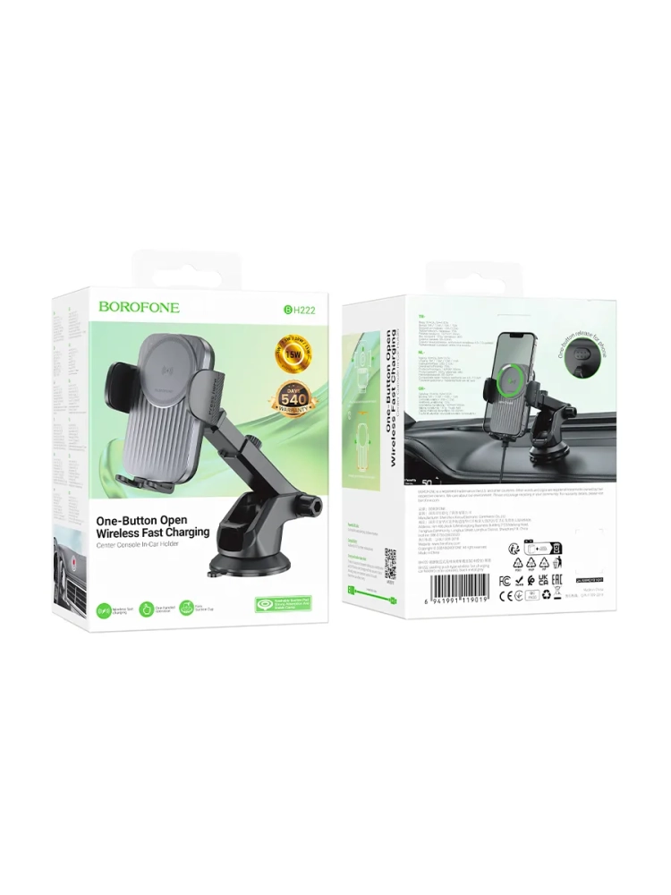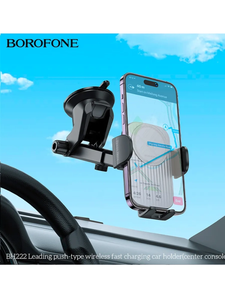 BOROFONE BH222 - это автомобильный держатель для телефона с беспроводной зарядкой мощностью до 15 Вт.