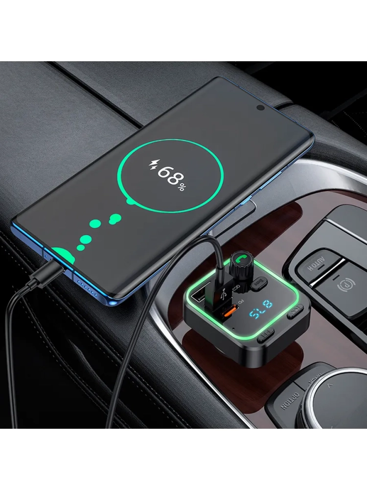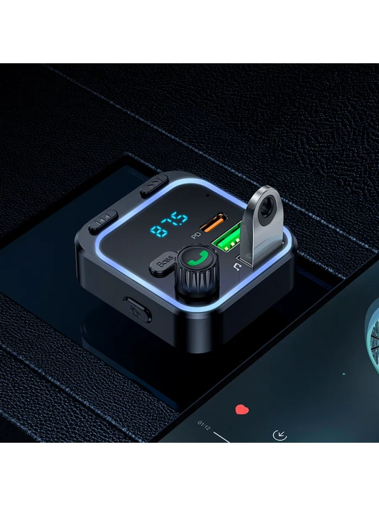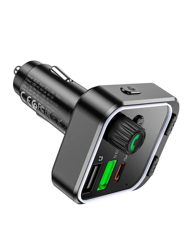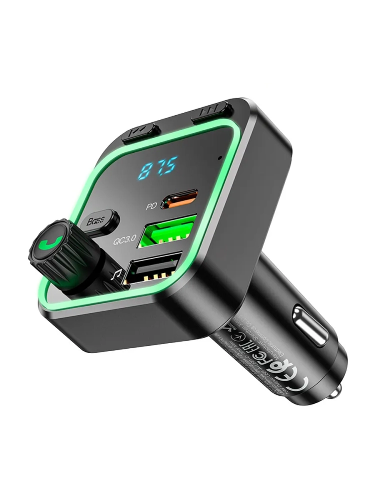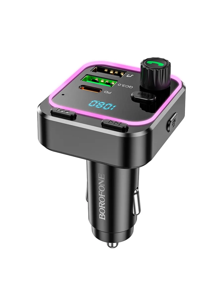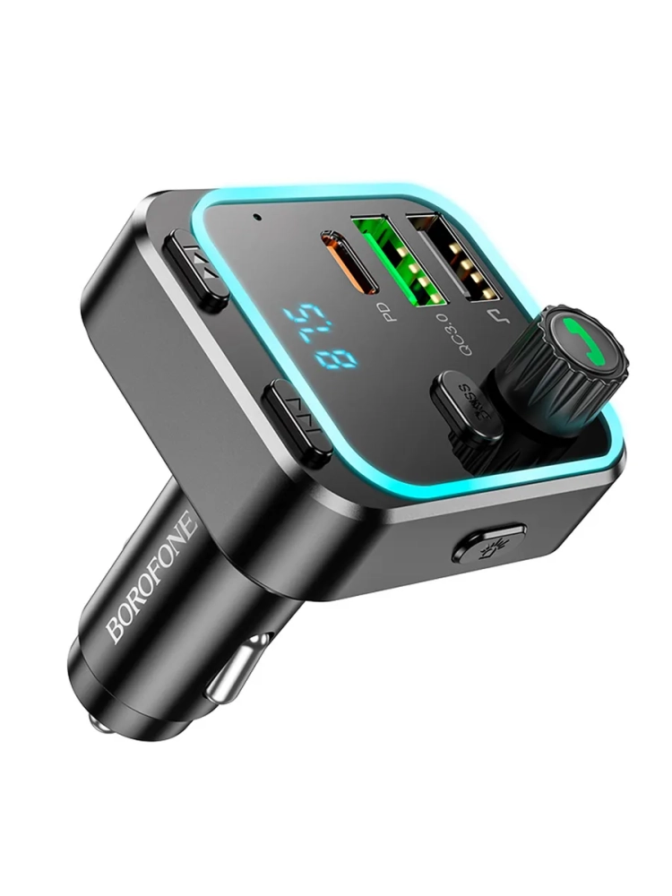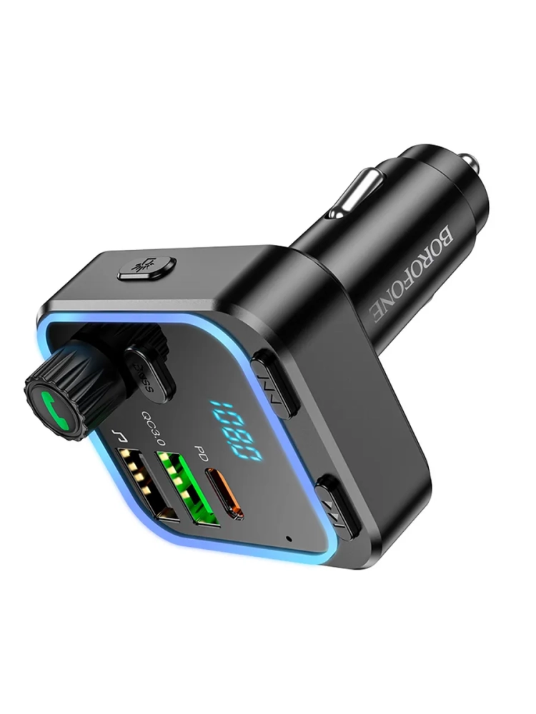 FM трансмиттер Borofone BC53 Highway — современный автомобильный Bluetooth модулятор с функцией передачи музыки через FM и поддержкой быстрой зарядки. Подключайте смартфон по Bluetooth 5.0, слушайте музыку с USB-флешки и заряжайте устройства одновременно с помощью трёх портов: USB-A (музыка), USB-A с поддержкой QC3.0 (18W) и Type-C с PD 20W. Суммарная мощность — до 38 Вт.