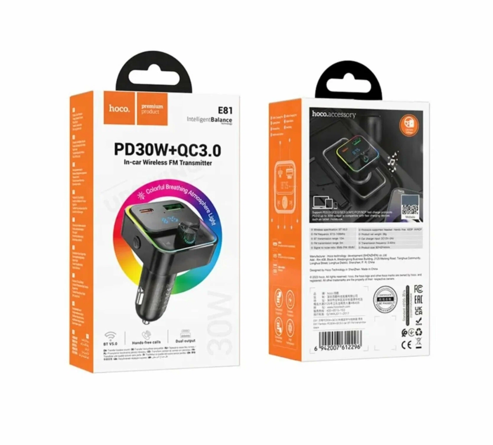 FM-модулятор Hoco E81 - это многофункциональное устройство, которое сочетает в себе удобство использования, стильный дизайн и высокую функциональность.