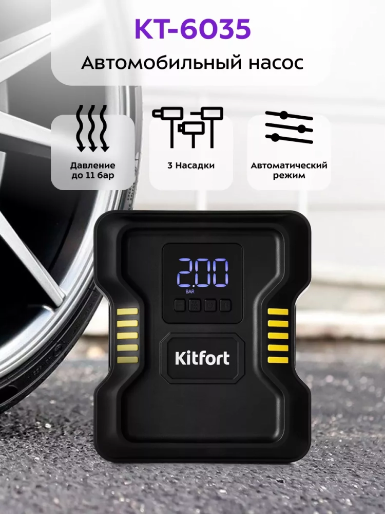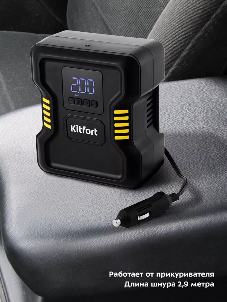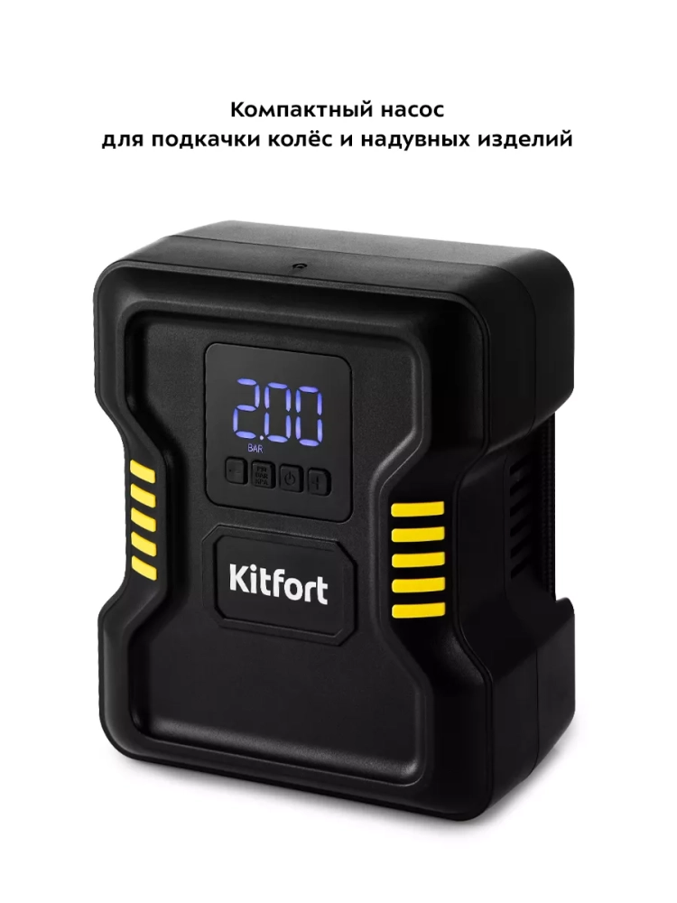 Автомобильный насос Kitfort KT-6035 поможет быстро и без усилий накачать автомобильные, мотоциклетные или велосипедные колеса, а также колеса самоката, мячи и надувные игрушки, матрасы или лодки. Также при помощи насоса вы можете проверить давление в шинах, не накачивая их.