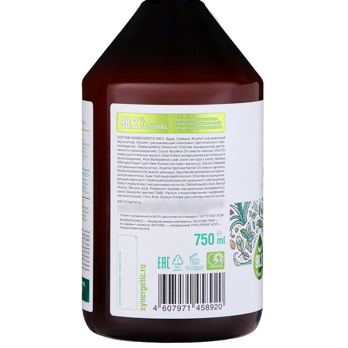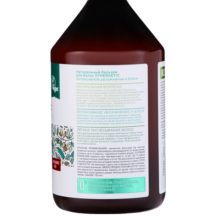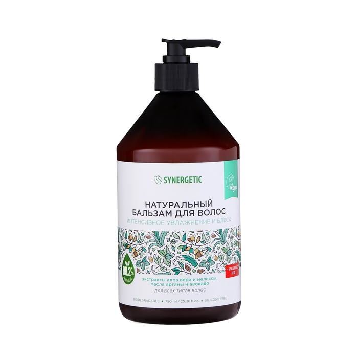 Бальзам натуральный для волос SYNERGETIC интенсивное увлажнение и блеск, 750 мл