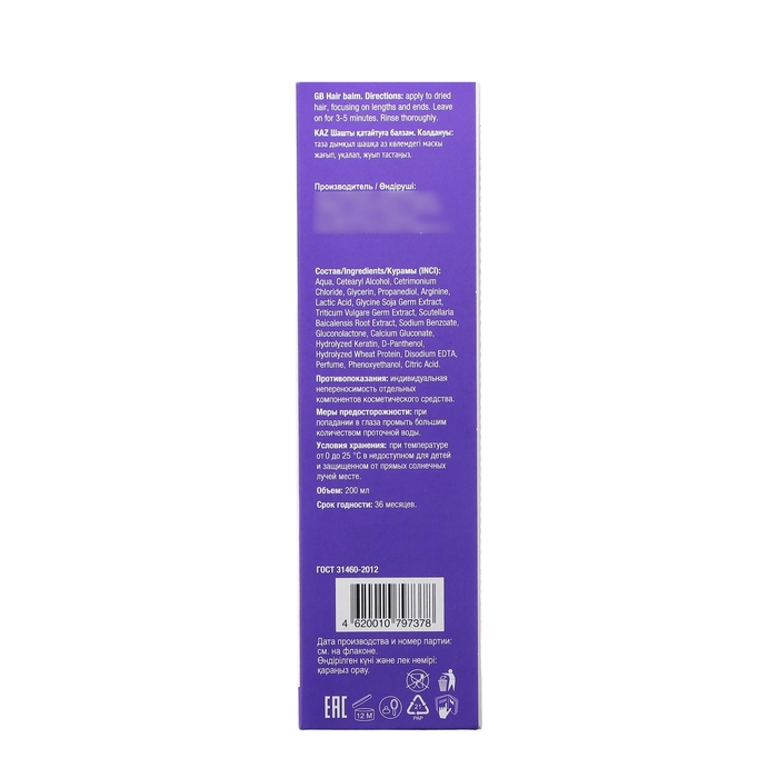 Состав: Aqua, Cetearyl Alcohol, Cetrimonium Chloride, Glycerin, Propanediol, Arginine, Lactic Acid, Glycine Soja Germ Extract, Triticum Vulgare Germ Extract, Scutellaria Baicalensis Root Extract, Sodium Benzoate, Gluconolactone, Calcium Gluconate, Hydrolyzed Keratin, D-Panthenol, Hydrolyzed Wheat Protein, Disodium EDTA, Perfume, Phenoxyethanol, Citric Acid.