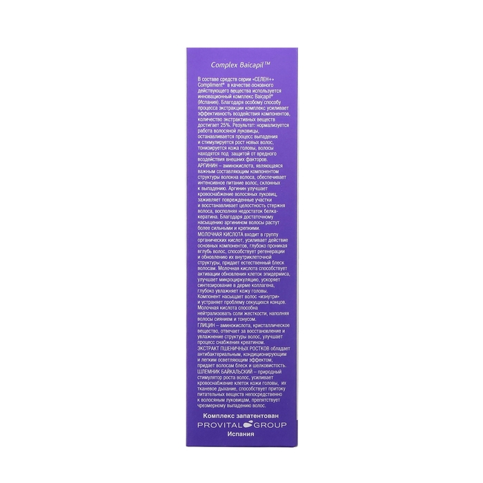 Активные компоненты комплекса Baicapil (Испания), которые содержатся в составе средства, нормализуют обменные процессы в коже головы, увеличивают толщину и количество волос, восстанавливают их структуру.
