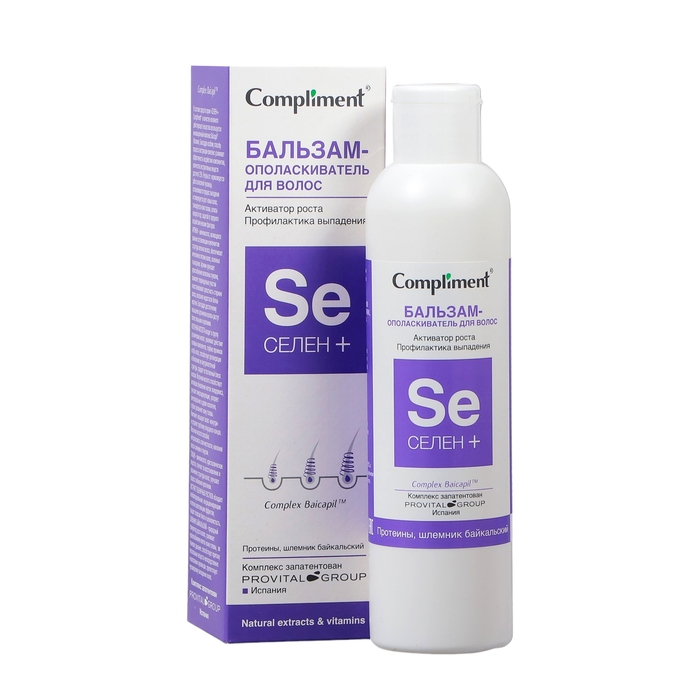Бальзам-ополаскиватель для волос Compliment «Селен +», активатор роста, профилактика выпадения, 200 мл
