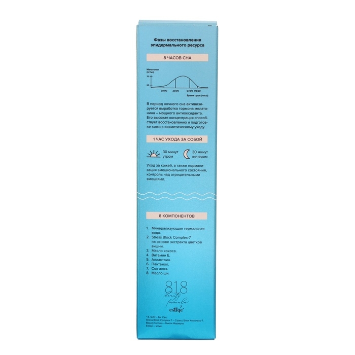 "818 Beauty Formula Estiqe" - это восстанавливающий успокаивающий бальзам после загара, предназначенный для ухода за кожей после длительного пребывания на солнце. Этот бальзам разработан с использованием специальных ингредиентов, которые помогают увлажнить и успокоить кожу, снизить раздражение и восстановить ее естественный баланс.