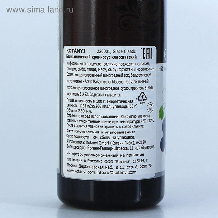 Бальзамический крем-соус Kotanyi, классический, 250 мл