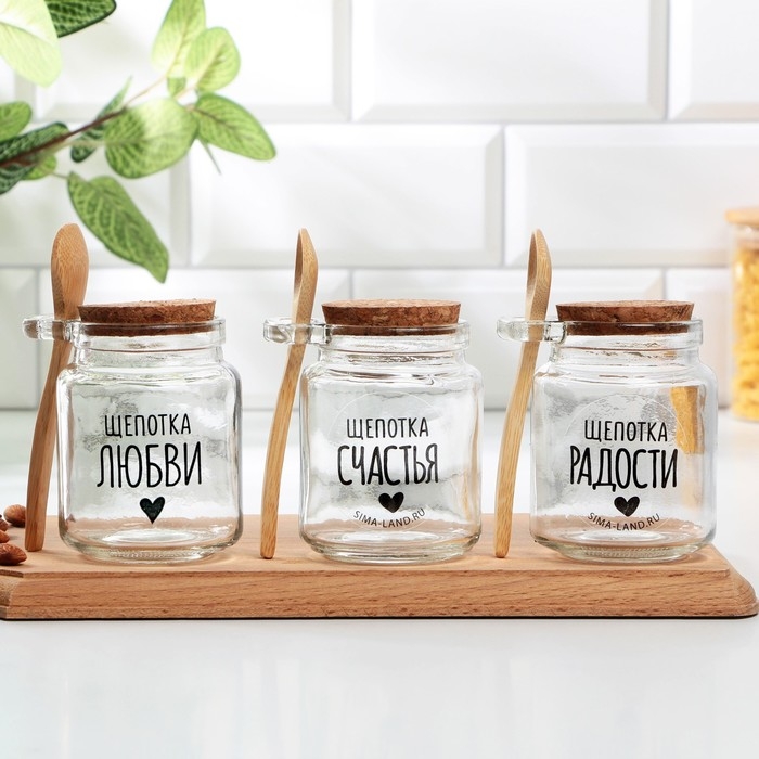 Банка для хранения сыпучих продуктов и круп с ложкой «Щепотка счастья», 250 мл
