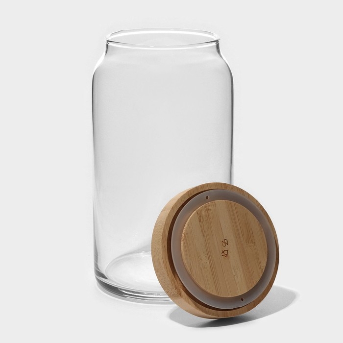 Банка для сыпучих продуктов стеклянная Вуди, 1,1 л, с бамбуковой крышкой