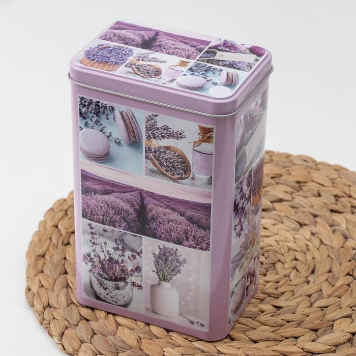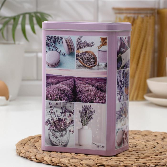 Банка с крышкой для сыпучих продуктов «Лаванда», 2,7 л, прямоугольная, 13,5×9,5 см, цвет и рисунок МИКС