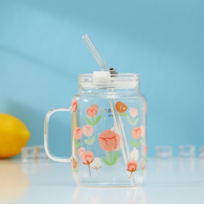 Банка с ручкой, крышкой и трубочкой очень удобна, потому что ее плотные стенки позволяют сохранять температуру напитка, она не такая хрупкая, как стакан.