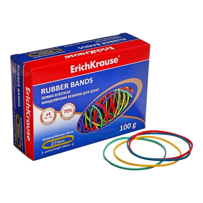 Банковская резинка, 100 г, ErichKrause, диаметр 60 мм, длина 100 мм, в коробке-деспенсере, МИКС