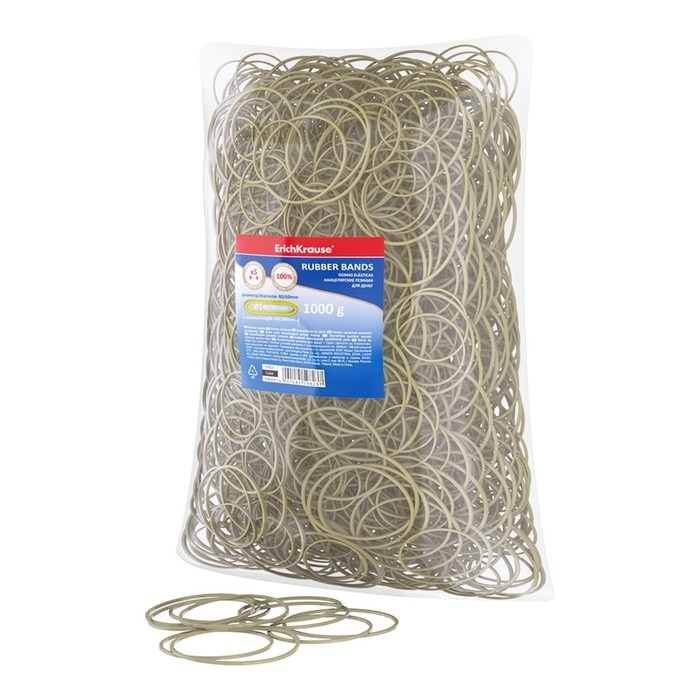 Банковская резинка, 1000 г, ErichKrause, диаметр 40/60 мм, длина 60/100 мм, 100% каучук, в пакете, натуральный цвет