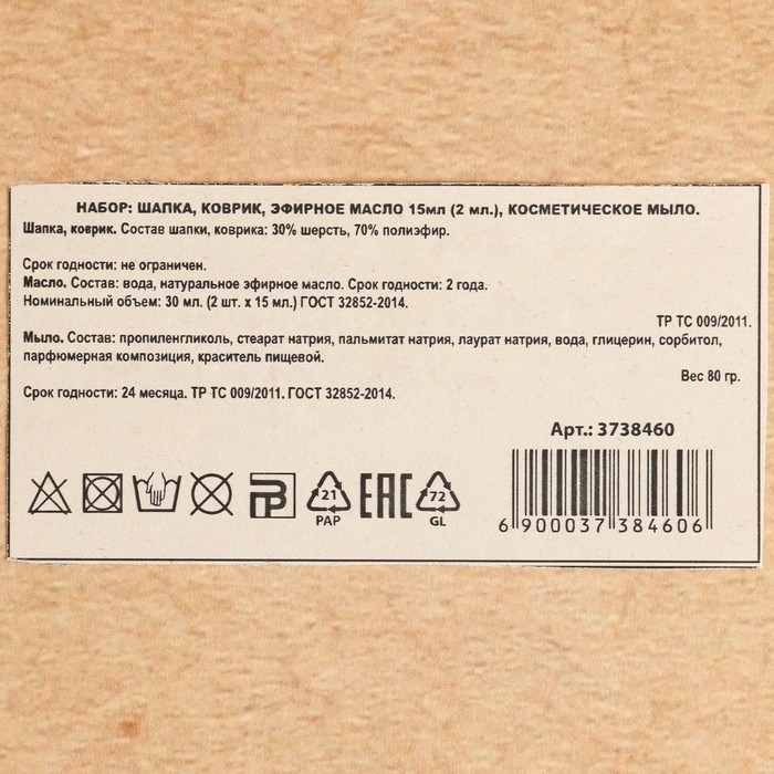 Аромамасло, Коврик, Мыло, Шапка