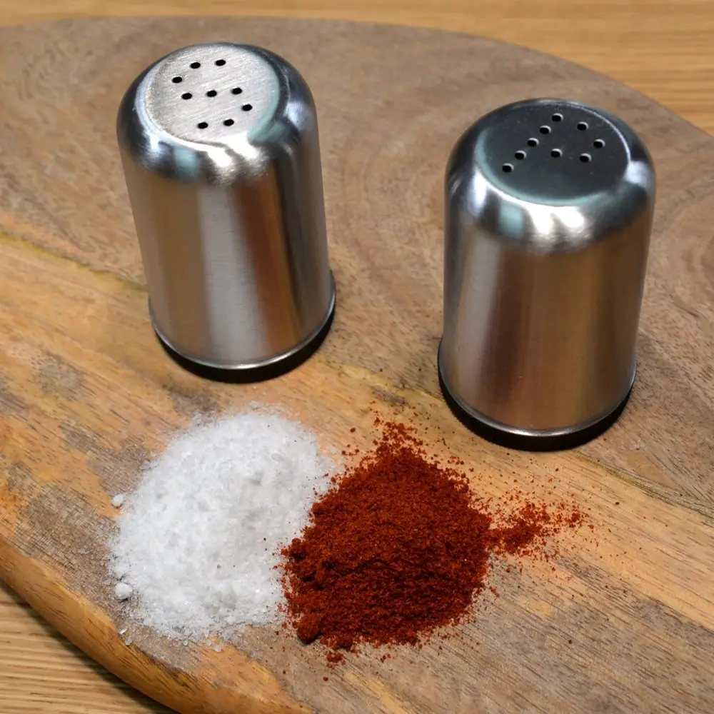 Когда специи под рукой, готовить становится гораздо проще. Набор «Спайси» удобен использовании, выглядит минималистично, подойдет для любого интерьера. Конструкция изделия максимально проста: откройте емкость, поместите внутрь соль, перец или любую другую приправу, затем плотно закройте крышку. Изготовлено: корпус из коррозионностойкой (нержавеющей) стали, крышка из пластмассы (полипропилен). При использовании следите, чтобы внутрь не попадала влага, тщательно просушивайте емкости после мытья. Диаметр 4,3 см, высота 6,7 см.