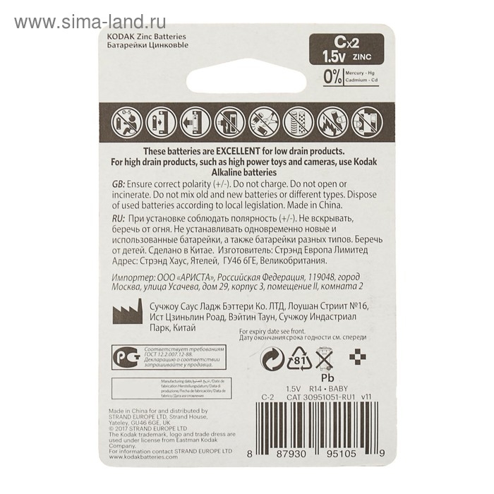 Максимальная эффективность солевых элементов питания (R14) достигается в приборах, которые не создают долговременных и интенсивных нагрузок. А их низкая цена не обременит вас при эксплуатации привычных устройств. Срок хранения составляет от 1 до 3 лет.