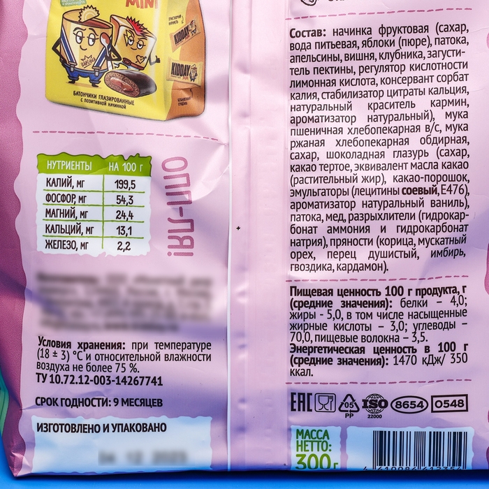 Батончик глазированный "KIDDAY mini", фруктовое ассорти, 300 г