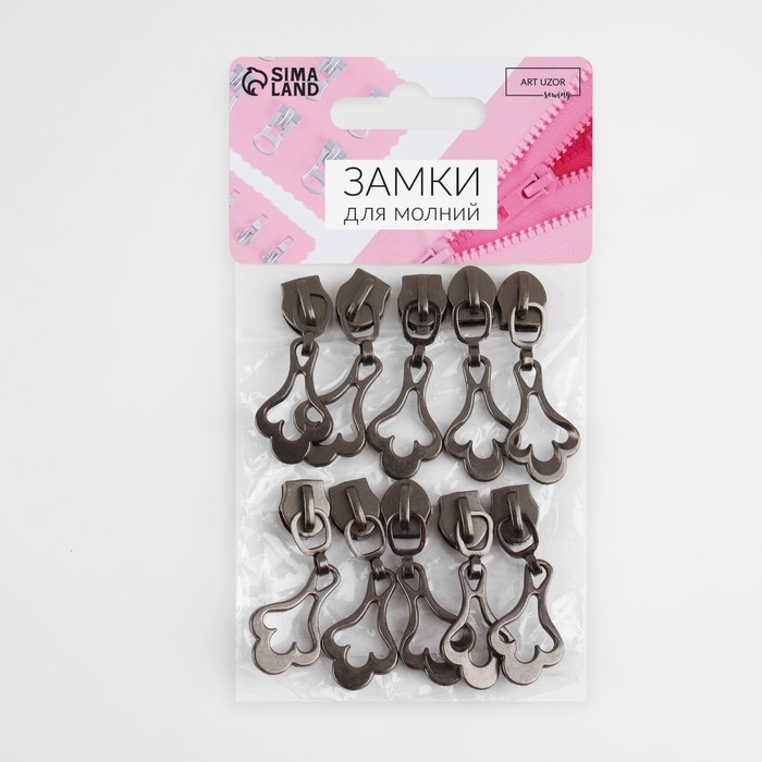 Бегунок галантерейный для молнии «Спираль», №5, декоративный, 10 шт, цвет чёрный никель