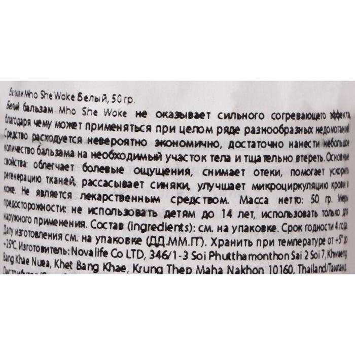 Белый бальзам Mho Shee Woke, при ушибах и растяжениях, 50 г