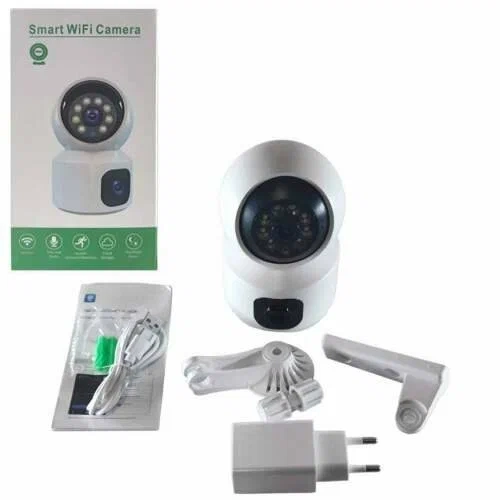 Беспроводная видеокамера (2 камеры, день/ночь, датчик движения, тревога, SD card) позволяет пользователям просматривать изображение дистанционно со смартфонов (Android и iOS) и оснащена двумя объективами направленным и поворотным с дистанционным управлением. Устройство может заменить собой две камеры и обеспечить полный контроль за происходящим в помещении. Камера оснащена микрофоном, динамиком, датчиком движения, встроенной сиреной, а также ночной инфракрасной и светодиодной подсветками. Камера не требует стационарного доступа в сеть Интернет, т.к. для передачи данных используется Wi Fi. Встроенная система обнаружения движения позволяет устройству оповещать пользователей сообщениями на смартфоны. Особенности: две камеры в одной. Устройство представляет собой две камеры в одном корпусе направленную и поворотную с дистанционным управлением. Просмотр со смартфона. Для дистанционного просмотра изображения с камеры со смартфона используются бесплатные приложения для Android и iOS (V380 Pro). Оповещение на смартфон по движению. Поворотный механизм. Одна из камер оснащена поворотным механизмом с управлением со смартфона, что обеспечивает круговой обзор. Запись по движению. Записи доступны для дистанционного просмотра и скачивания со смартфона. Разрешение видео Full HD. Камера ведет видеозапись с высоким разрешением 1920х1080 пикселей, что позволит видеть мелкие детали изображения. Встроенный микрофон позволяет вести видеозапись со звуком. Встроенная ИК подсветка. Подсветка активируется автоматически и позволяет вести съемку даже в полной темноте на расстоянии до 10 метров. Встроенная светодиодная подсветка может срабатывать при обнаружении движения в ночное время. Встроенный динамик используется для организации двухсторонней аудиосвязи между смартфоном пользователя и человеком, находящимся возле камеры. Запись на карту памяти объемом до 64 Гб. Для записи используются карты памяти формата Micro SD (приобретается отдельно).