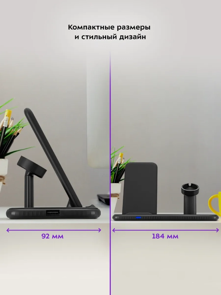 Благодаря стильному дизайну и компактному размеру зарядная станция легко впишется в ваш интерьер.