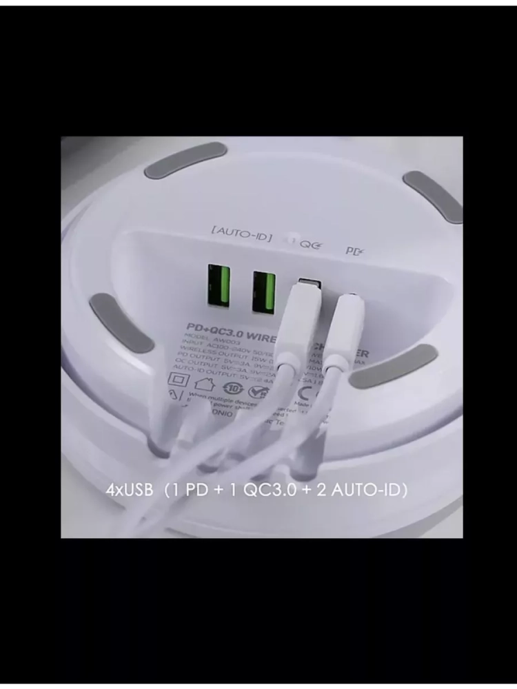 Беспроводная зарядка с 3 USB-входами и 1 Type-C - это надежное и универсальное беспроводное зарядное устройство, которое обеспечит удобство и эффективность при зарядке ваших устройств.Сочетание 3 USB-входов и 1 Type-C позволяет одновременно заряжать до четырех устройств. Вы можете подключить ваш смартфон, планшет, наушники и другие гаджеты и быть уверенными, что они будут заряжены быстро и без проблем.Это устройство обладает мощностью 32W, что позволяет быстро заряжать ваши устройства и сокращает время ожидания. Благодаря встроенной технологии быстрой зарядки, вы сможете заряжать свои устройства быстрее, чем обычно, что особенно актуально в условиях, когда время ограничено.Беспроводная зарядка позволяет вам заряжать совместимые устройства, просто расположив их на поверхности зарядки. Теперь вам не нужно искать разъемы и провода, просто положите ваш смартфон на зарядное устройство, и он начнет заряжаться автоматически.Это устройство от бренда LDNIO - известного производителя высококачественных гаджетов. Вы можете быть уверены в его надежности и долговечности, а также в безопасности зарядки ваших устройств.