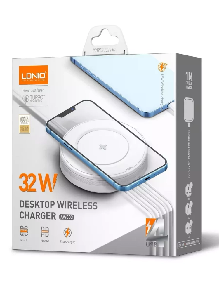 Беспроводное зарядное устройство + 3 USB + Type-C 32W AW003 LDNIO