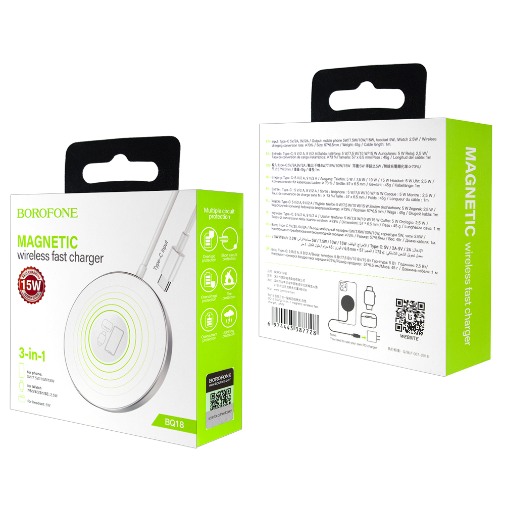 Беспроводное зарядное устройство BQ18 15W 3 в 1 BOROFONE белое
