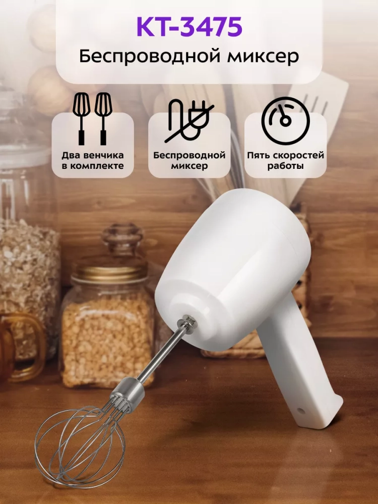 Беспроводной миксер кухонный ручной КТ-3475 - 20 Вт