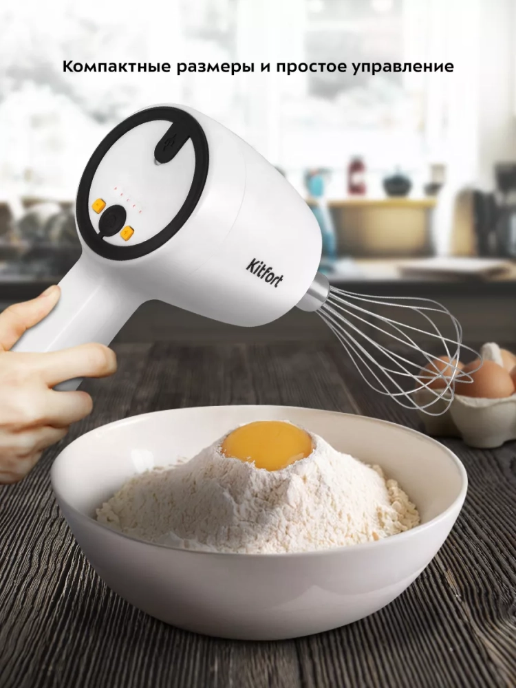 КТ-3475 — ручной миксер, который поможет вам взбить яичные белки, приготовить кремы, домашние соусы или жидкое тесто, например, для шарлотки.