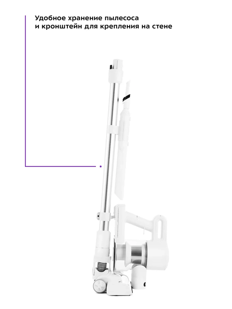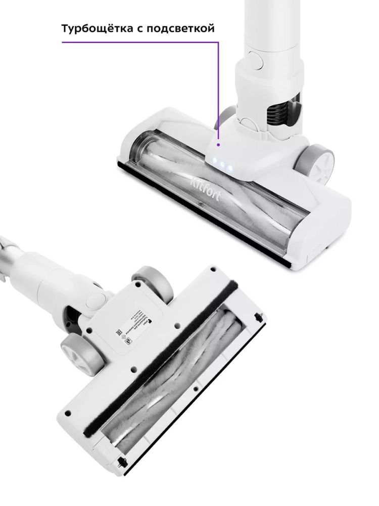 Беспроводной вертикальный пылесос Kitfort КТ-5117 очень удобен при локальной и генеральной уборке. Он компактен, всегда под рукой и готов к работе. При отсоединении удлинительной трубки и установке насадки он превращается в ручной пылесос. Благодаря работе от аккумулятора не нужно включать вилку в розетку, провода не мешают под ногами. Пылесос имеет неограниченный радиус действия: от любого уголка квартиры до машины или беседки в саду. Пылесос комплектуется турбощеткой, которая качественно очищает гладкие поверхности и ковровые покрытия с коротким ворсом. Также к пылесосу прилагаются насадка 2 в 1 с выдвигающейся ворсовой частью для труднодоступных мест, кронштейн для настенного хранения устройства, узкая насадка, а также дополнительный держатель насадок на удлинительной трубке. Светодиодная подсветка на напольной щетке способствует более качественной уборке. Пылесос оборудован современным циклонным фильтром, при этом сила всасывания не зависит от наполненности пылесборника.