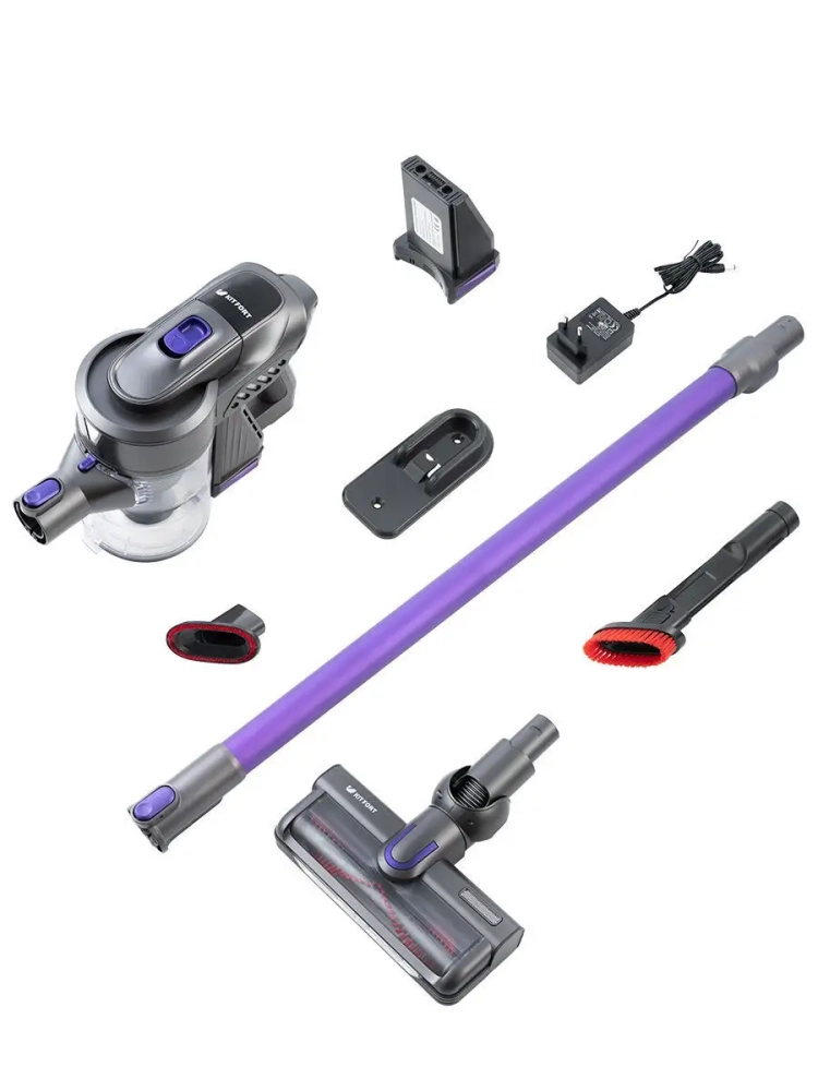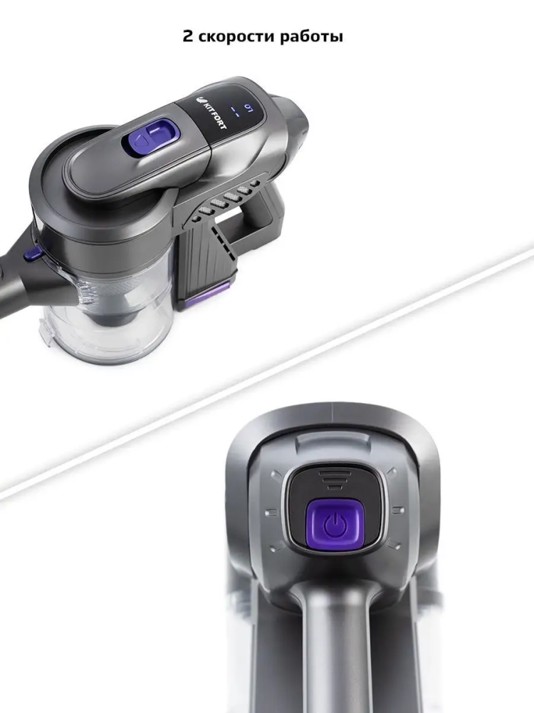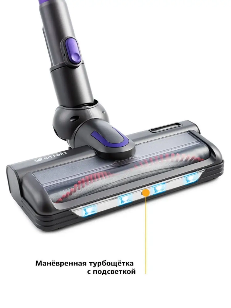 Вертикальный беспроводной пылесос Kitfort КТ-543 удобен при локальной и генеральной уборке. Он компактен, всегда под рукой и готов к работе, а при отсоединении удлинительной трубки превращается в ручной пылесос. Благодаря работе от аккумулятора не нужно включать вилку в розетку, провода не мешают под ногами, и вы можете использовать пылесос там, где нет электричества, например, в салоне автомобиля или в дачной беседке. Конструкция 2 в 1 предусматривает наличие ручного пылесоса, который удобно использовать отдельно. Пылесос комплектуется турбощеткой, которая помогает справиться с качественной очисткой ковровых покрытий и удалением шерсти домашних животных, волос и ниток. Щетка для пола оснащена подсветкой. Также к пылесосу прилагается универсальная насадка 3 в 1 и кронштейн для настенного хранения устройства. Пылесос оборудован современным циклонным фильтром. Пылесос можно использовать для уборки полов и ковровых покрытий, чистки мягкой мебели и салона автомобиля.