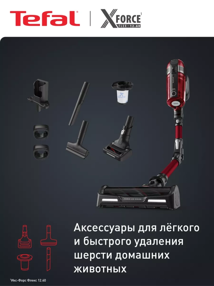 Беспроводной пылесос Tefal X-Force Flex 12.60 Animal Care Red TY98A9WO - это идеальное решение для эффективной уборки в вашем доме.