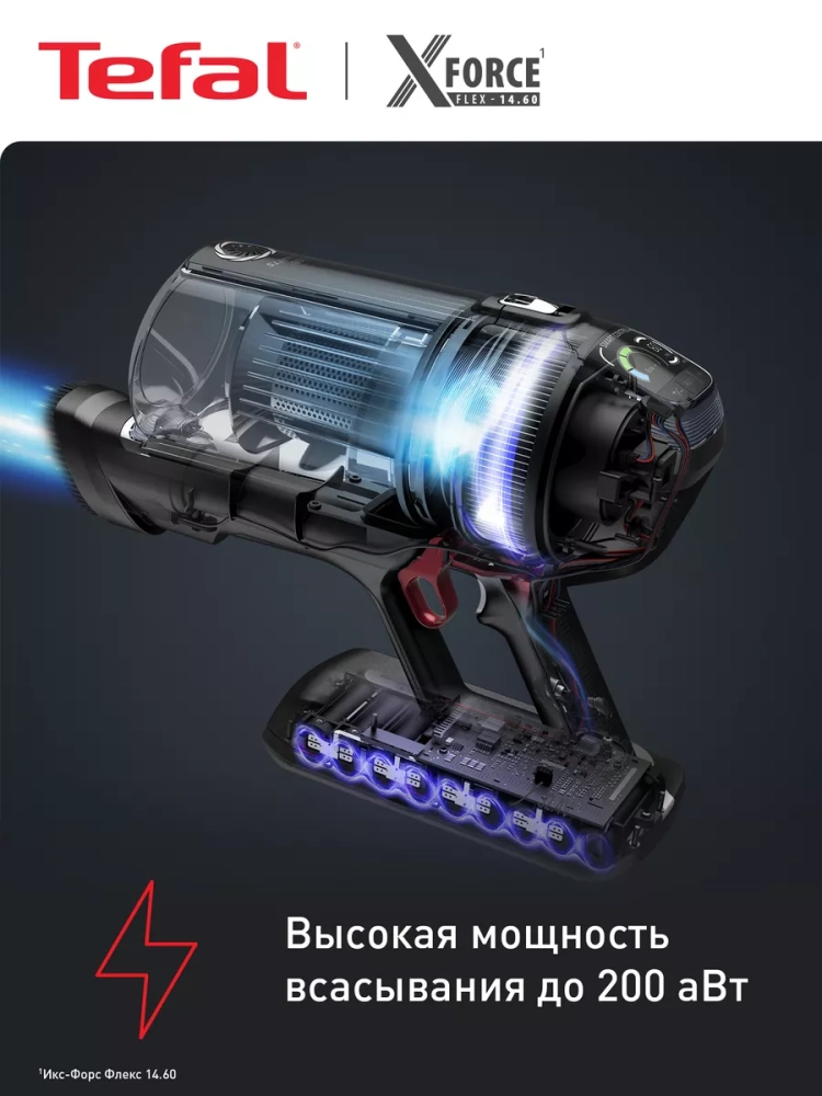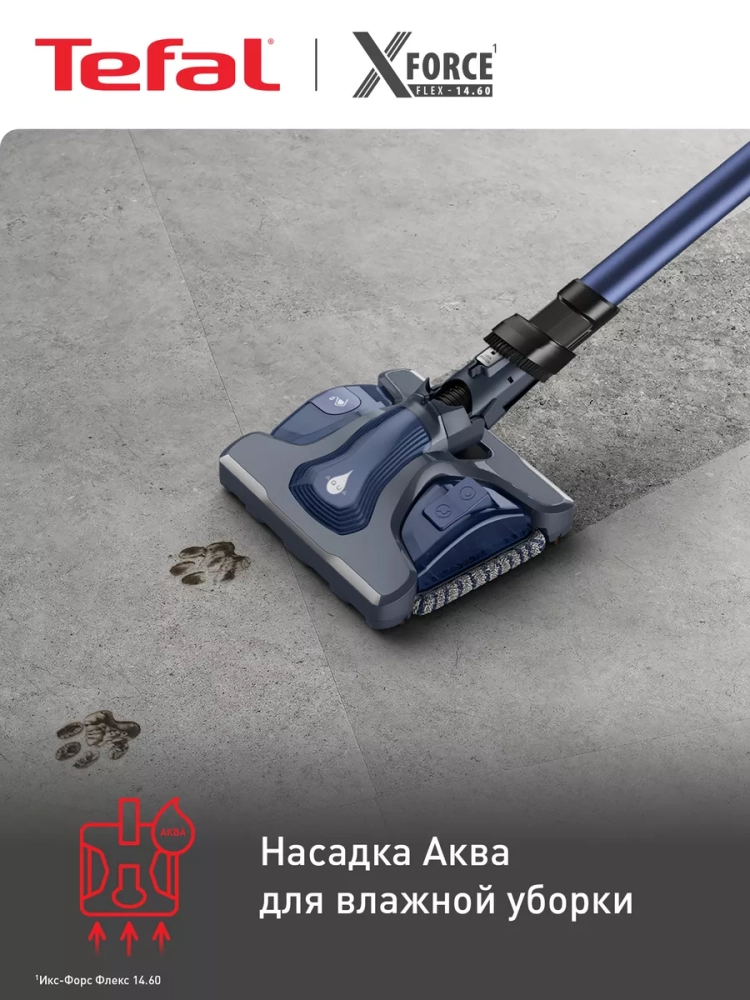 Беспроводной пылесос Tefal X-Force Flex 14.60 Aqua TY99C0WO. Откройте для себя невероятный опыт высокоэффективной уборки вместе с лучшим в своем классе беспроводным вертикальным пылесосом Tefal X-Force Flex 14.60.