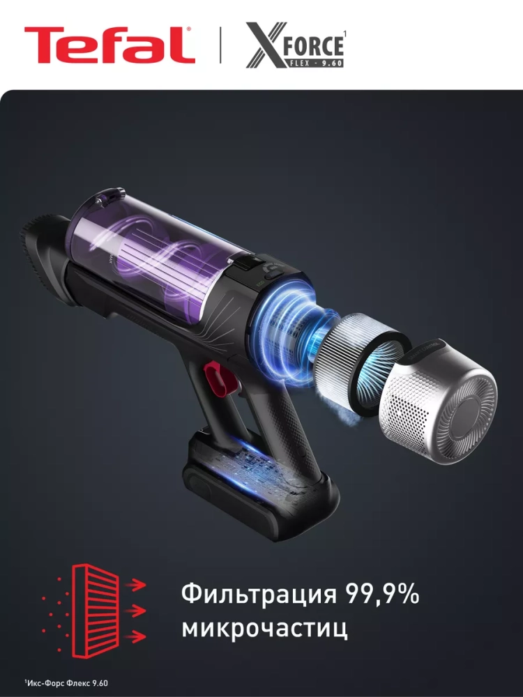 Откройте для себя невероятный опыт высокоэффективной уборки вместе с лучшим в своем классе бытовым вертикальным пылесосом без провода Tefal X-Force Flex 9.60 Allergy!