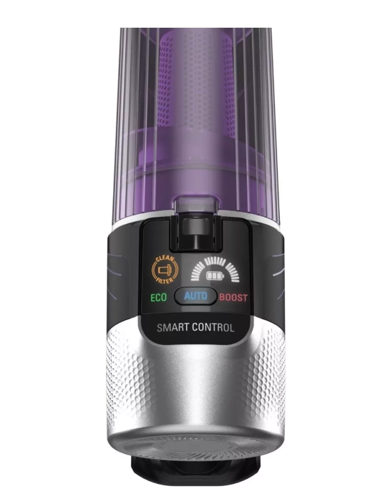Фильтр задерживает 99.9% пыли, аллергенов и пылевых клещей. Кроме того, индикатор состояния фильтра сообщает, когда его необходимо очищать, это обеспечивает максимальную эффективность во время каждого использования пылесоса. Умный дисплей вертикального пылесоса Smart Control отображает оставшееся время работы, состояние фильтра, уровень мощности всасывания и активацию режима Boost.