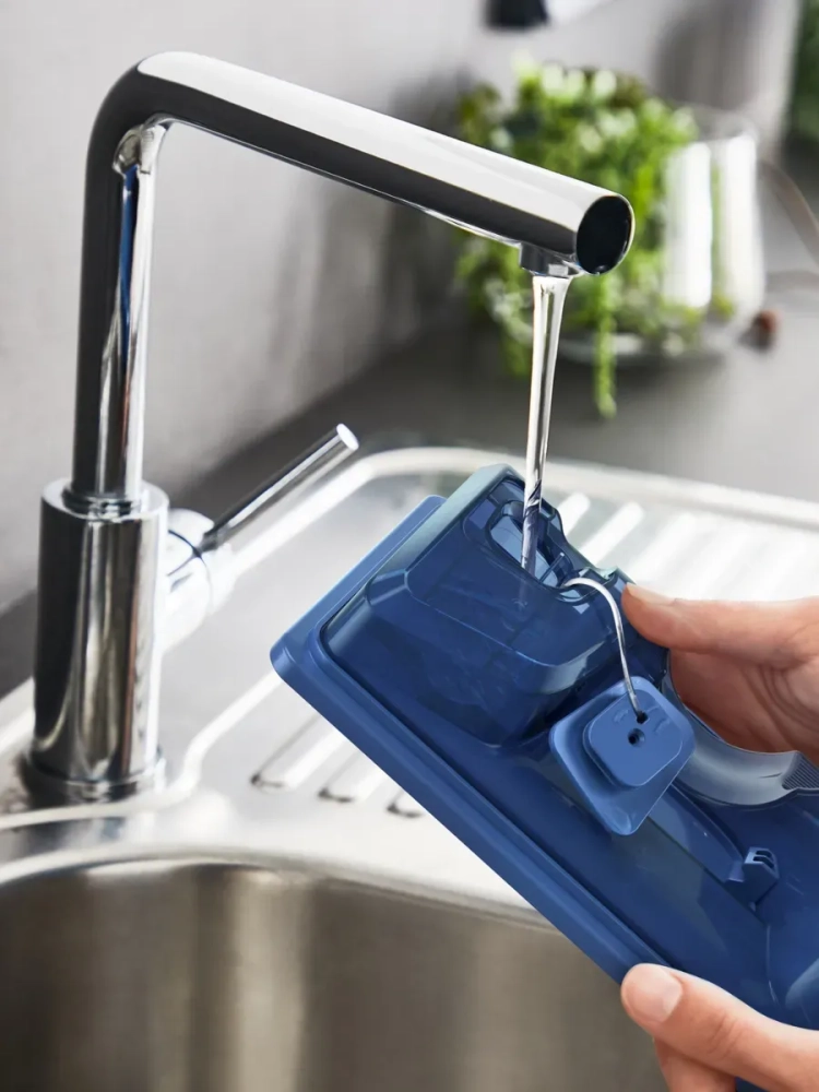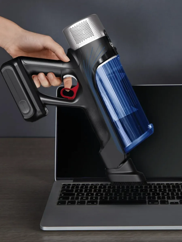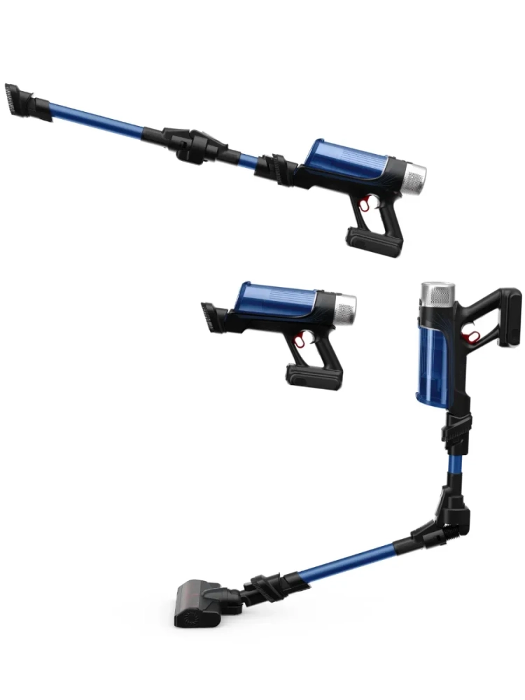 SMART-дисплей управления отображает заряд батареи, уровень мощности, включение режима Boost и состояние фильтра. Аксессуары для комфортной уборки в комплекте: док-станция, зарядное устройство, запасной фильтр, насадка для мебели, щелевая насадка, две встроенные щетки для любых поверхностей, насадка Aqua, две насадки-тряпки.