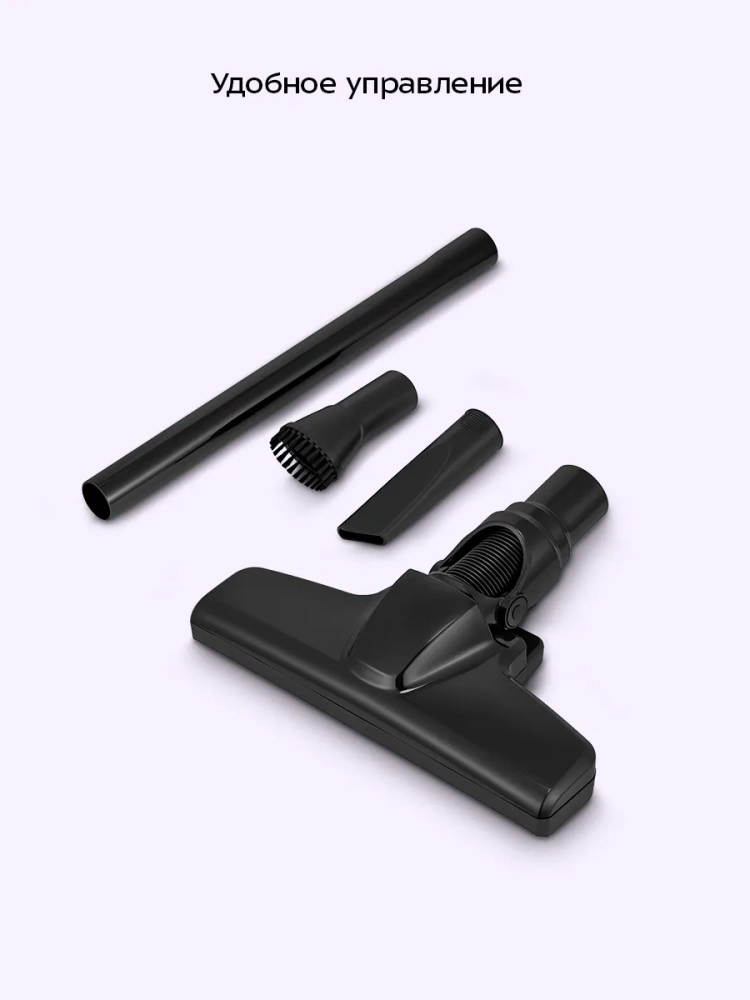 В комплекте к пылесосу идут ворсовая щетка и узкая насадка. Ворсовая щетка подходит для чистки мебели, ковров и ковровых поверхностей, ковриков в салоне автомобиля, для сбора мелкого сыпучего мусора с неровных поверхностей. Ворс щетки способствует лучшей очистке и не царапает поверхность. Ворсовая часть щетки вращается для более удобного использования. Узкая насадка удобна для уборки таких труднодоступных мест, как радиаторы отопления, углубления в мягкой мебели, углы и щели.