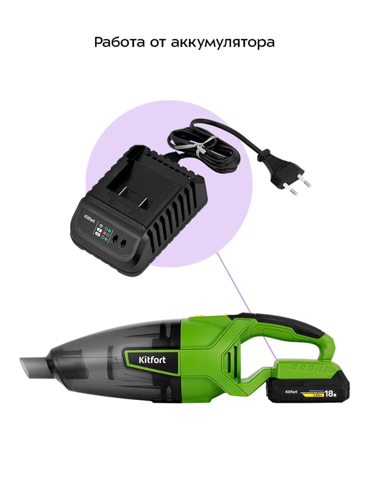 Ручной пылесос Kitfort КТ-5294 удобен при локальной и генеральной уборке. Он компактен, работает от аккумулятора, и при желании легко трансформируется в вертикальный пылесос благодаря наличию удлинительной трубки и насадки для пола в комплекте.