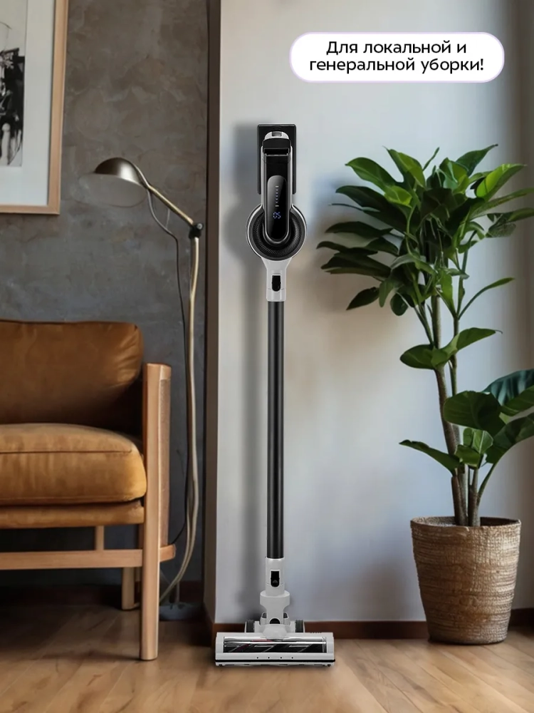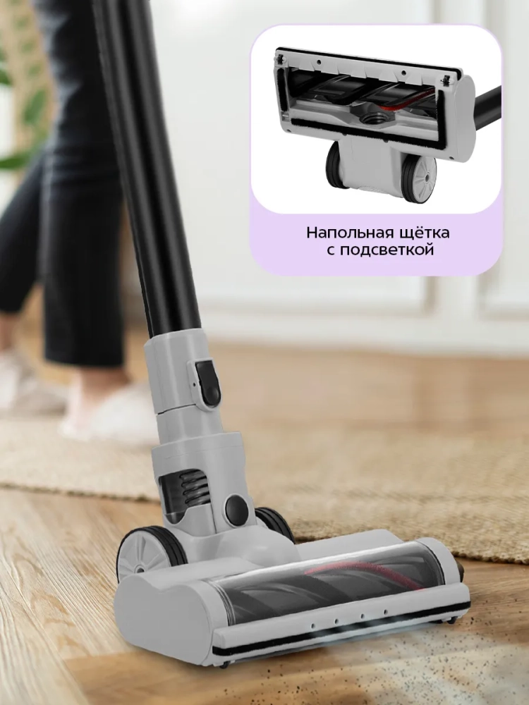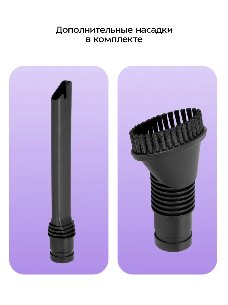 Благодаря работе от аккумулятора пылесос имеет неограниченный радиус действия: от любого уголка квартиры до машины или беседки в саду.